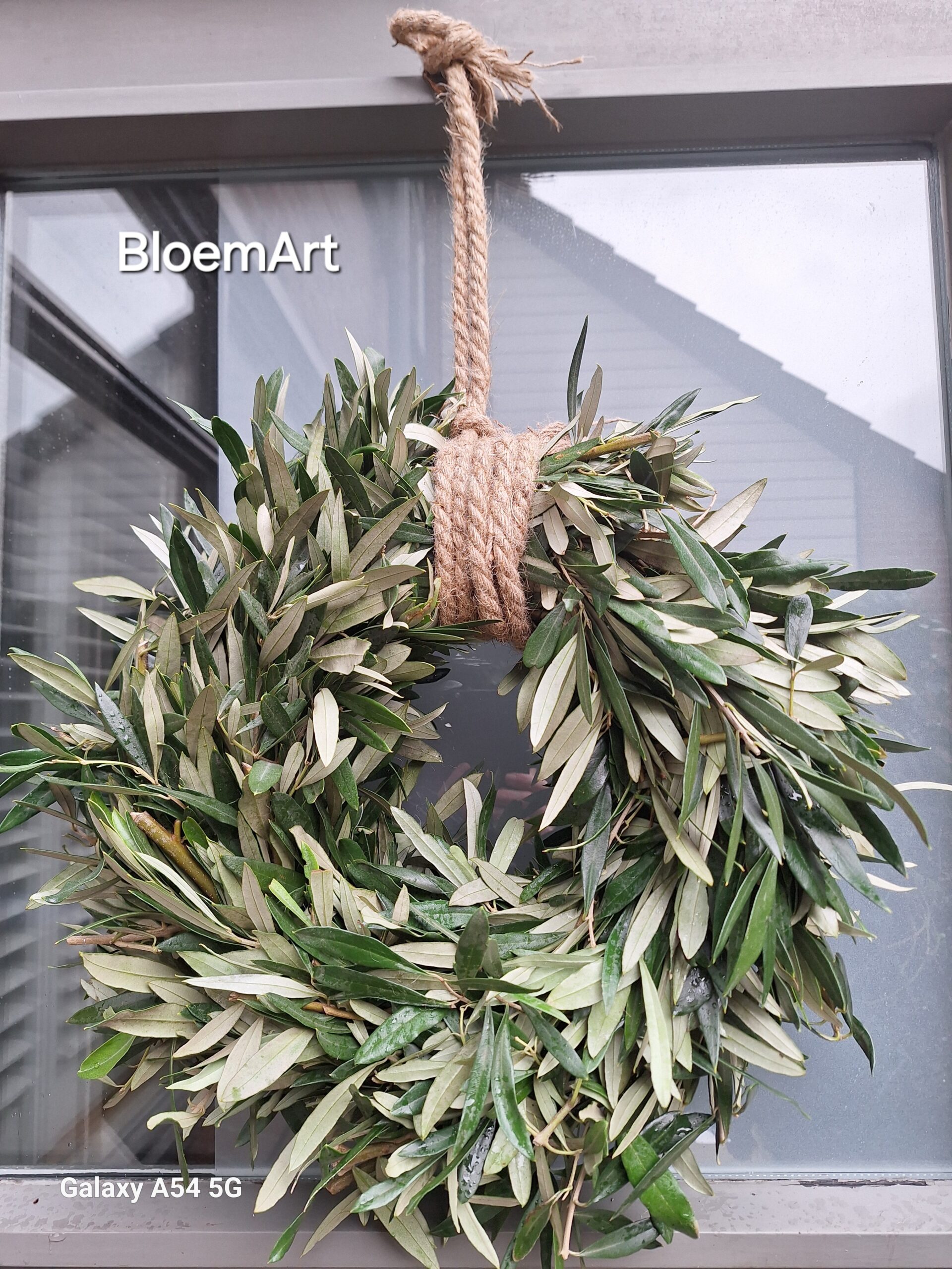 Olijf krans afgewerkt met touw ca 40cm