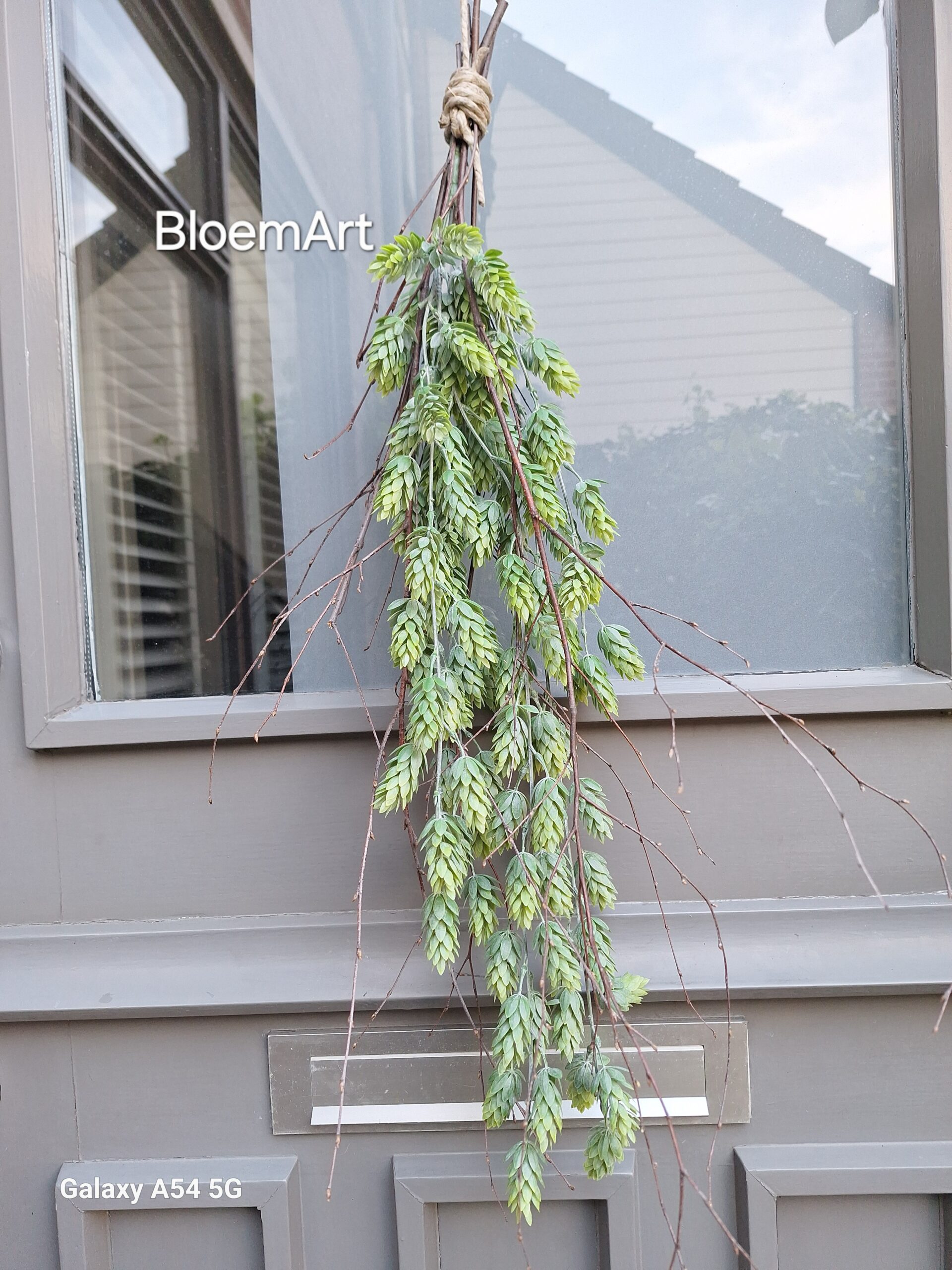 Toef met ( kunst) Hop niet van echt te onderscheiden met echte berkentakken en touw.