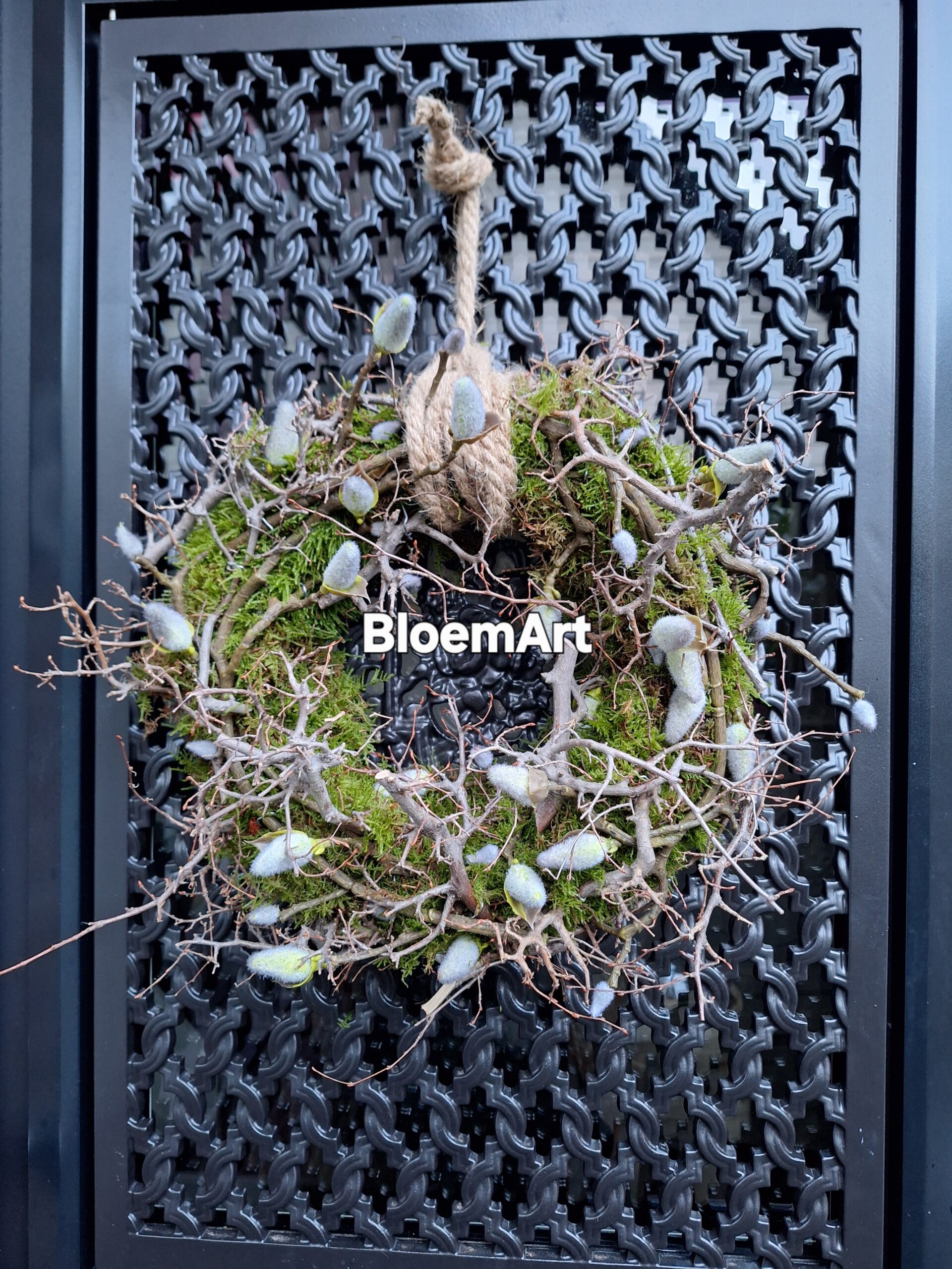 Gemaakt met mos Bonsai takjes en ( nep) Magnolia